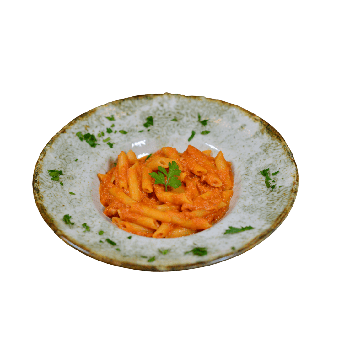 (penne, ton, ceapă roșie, usturoi, vin alb, sos livornese, brânză dură, pătrunjel) – 320g
