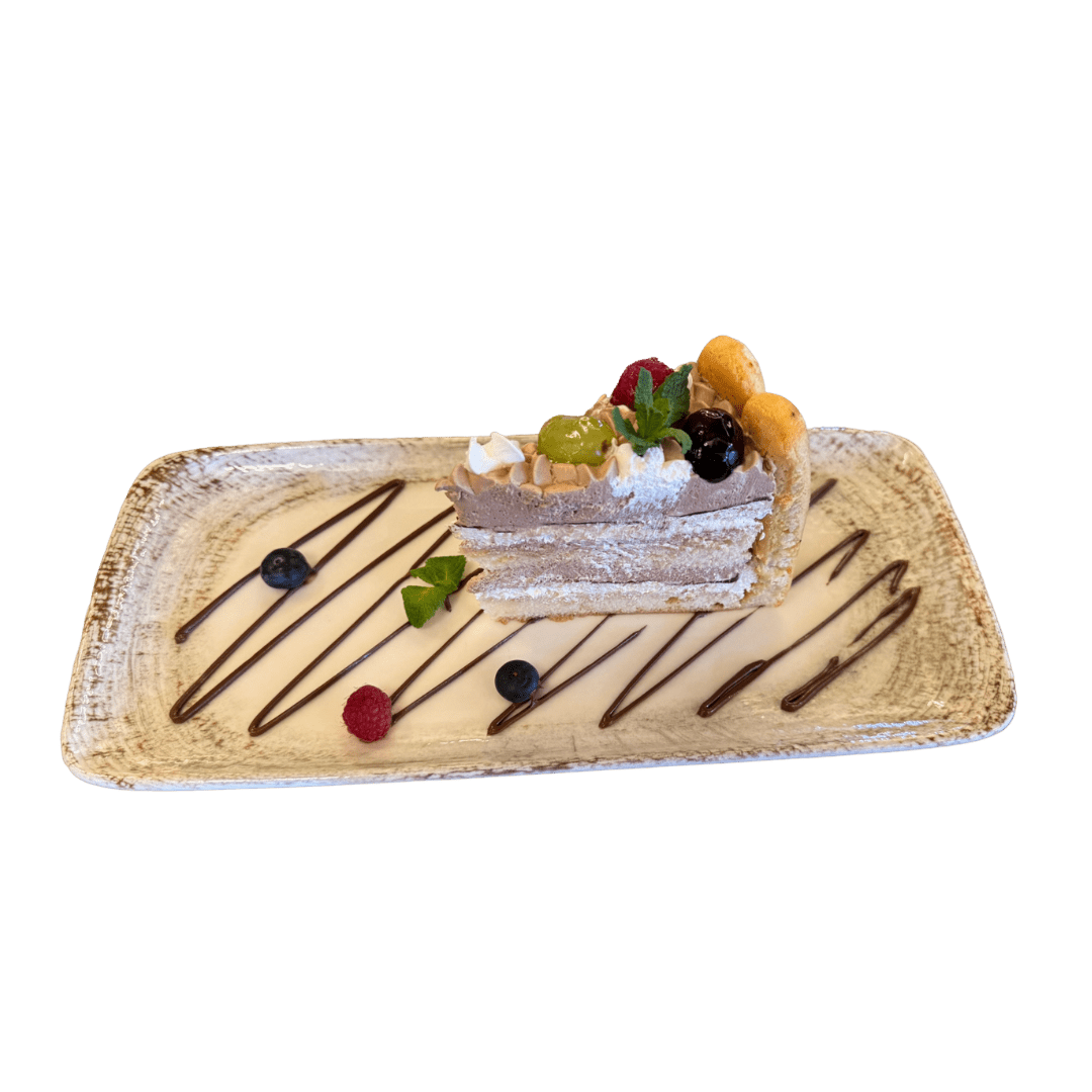 (blat, spumă de Nutella, cremă de mascarpone, frișcă, pișcoturi, fructe) – 225g